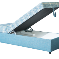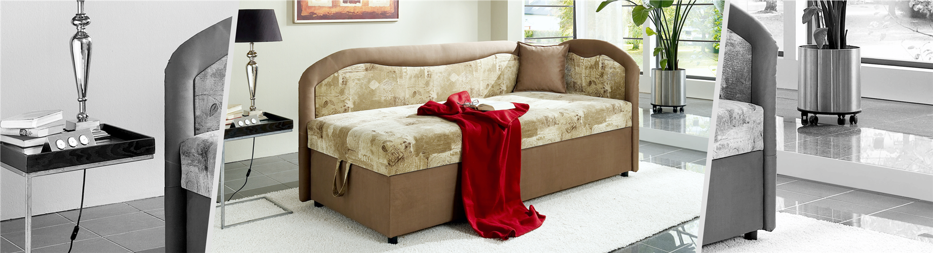 Die Polsterliege Rimini verfügt über einen stabilen Buchenholzrahmen. Der Federkern besteht aus Wellenfedern, die mit einer Filzabdeckung versehen ist. Die Liege ist mit einem hochwertigen Komfortschaum ausgestattet und kann mit oder ohne Kopf-, Fuß- oder Rückenteil geliefert werden. Die Liege verfügt über einen Bettkasten in dem schnell und mit wenig Aufwand Decke und Kissen verstaut werden können. Kopf und Fußteil sind verstellbar. Dieses Model ist auch als Doppelliege verfügbar.